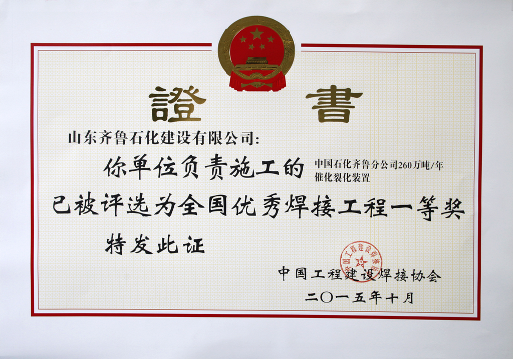 全國優(yōu)質(zhì)焊接工程-中國石化齊魯分公司260萬噸/年催化裂化裝置