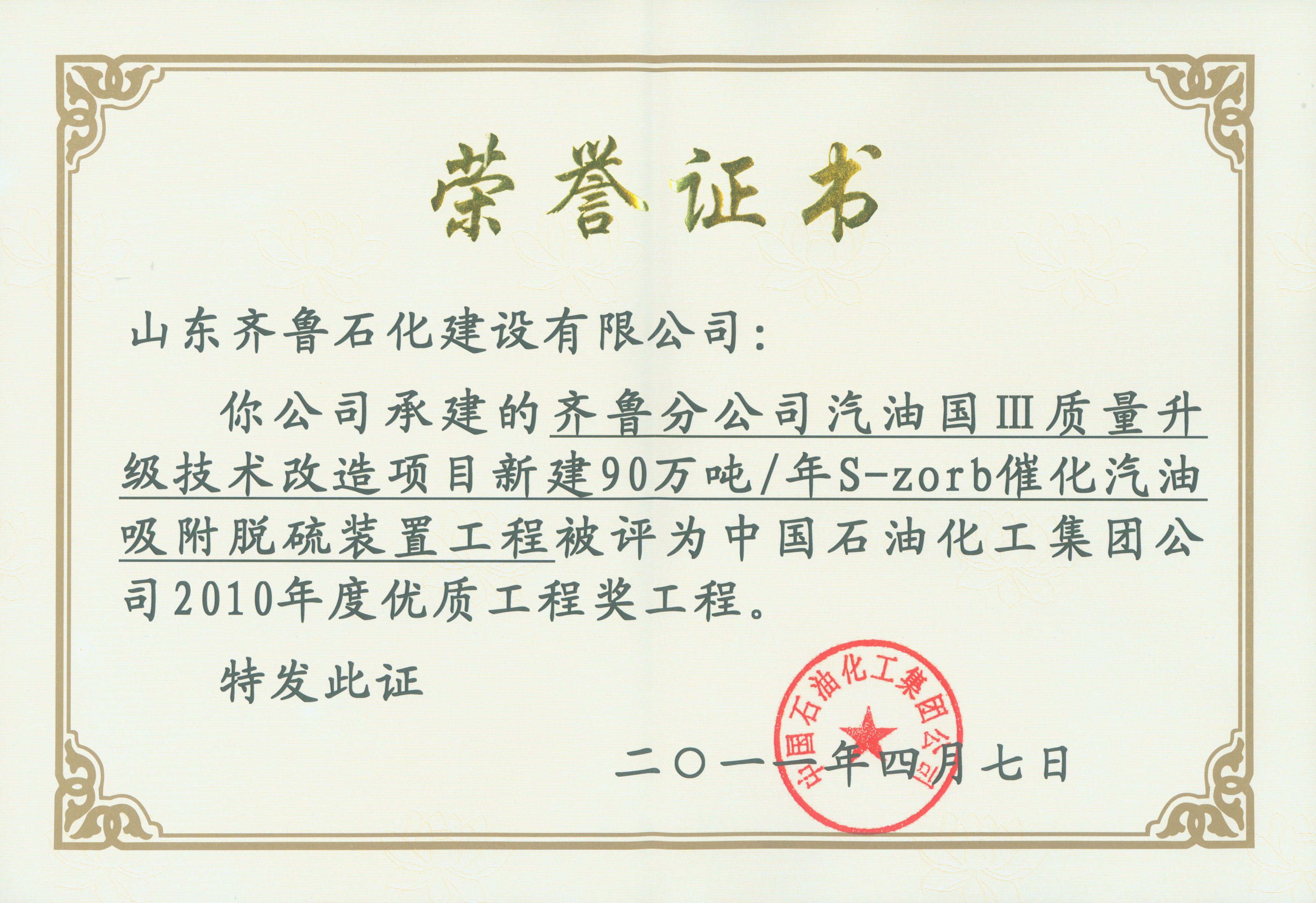 中國石化優(yōu)質(zhì)工程獎